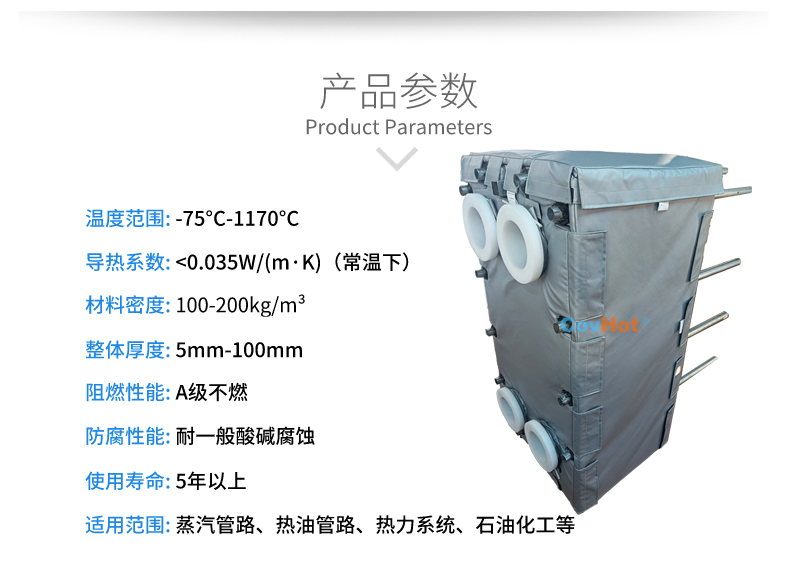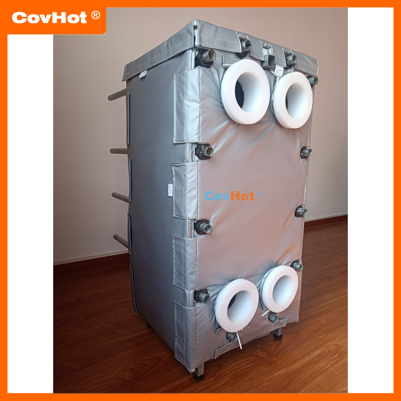 針對以上的問題,科好特自主研發(fā)的節(jié)能型板換保溫套,根據(jù)設(shè)備不同的尺寸形狀量身定制,可有效減少換熱器的熱損失,裝拆方便,可重復(fù)使用。節(jié)能型板換保溫套是工業(yè)節(jié)能保溫理想選擇!
